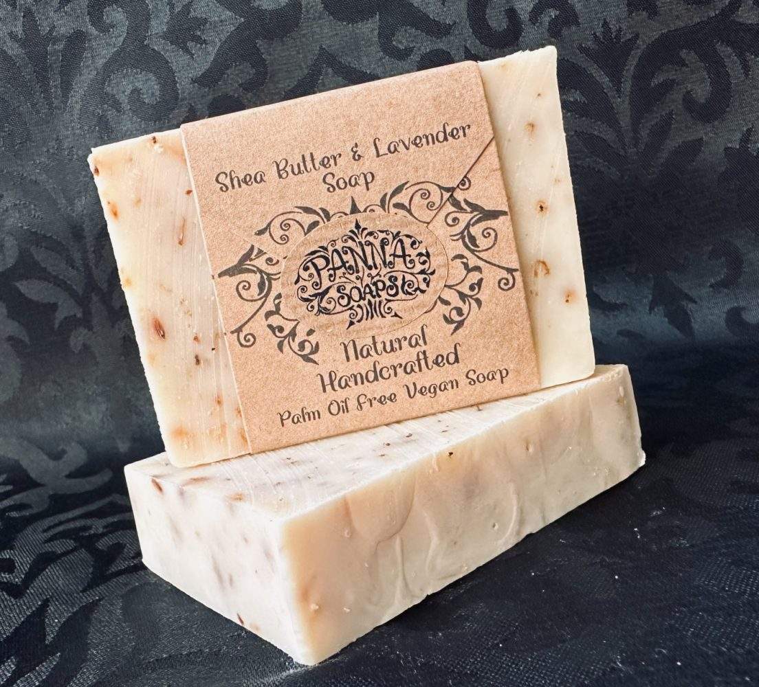 Ingredients: olive & coconut oil; Shea Butter; water; soda lye; dried lavender flower; essential oil of lavender